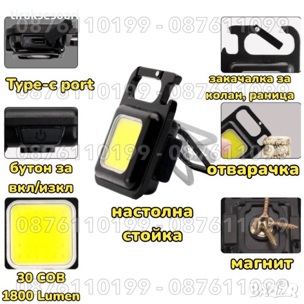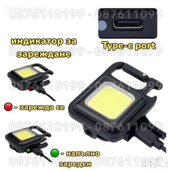1 БРОЙ Многофункционален - Мини LED Ключодържател, фенерче, аварийна лампа, отварачка и всичко това в едно.