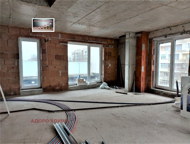 АДОРО ХОУМС Представя за продажба мезонет с чиста жилищна площ от 189,57кв.м., разпределени, както следва: коридор, голяма всекидневна с кухненска част с излаз към две тераси, едната от тях голяма панорамна, на втория етаж има две спални и санитарно помещение. Жилището се предава в степен на завършеност по БДС, с френски прозорци. Апартаментът е светъл и без скосения, намира на тихо и спокойно място на пешеходно разстояние от центъра.
