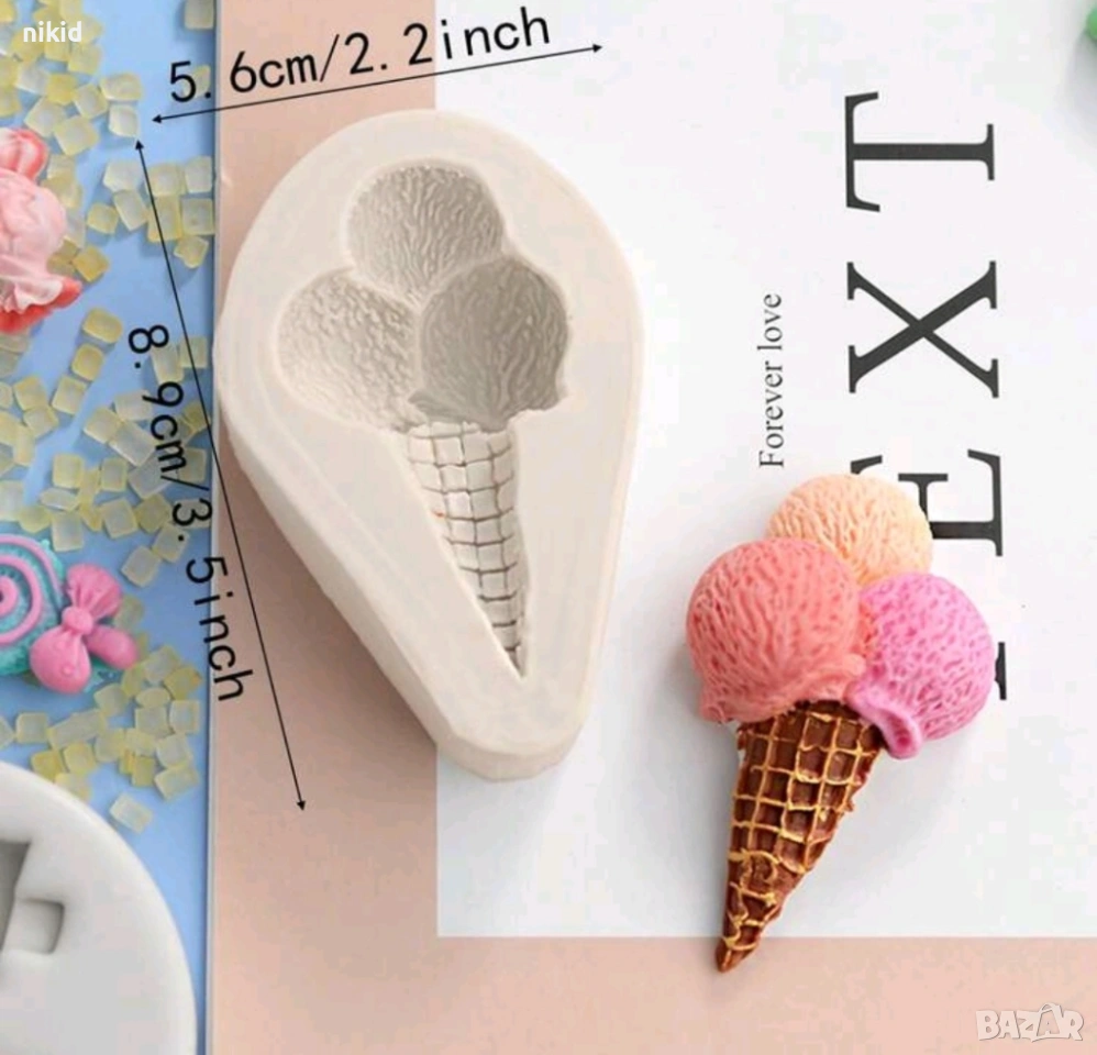 Сладолед фуния с 3 топки сладоледена фунийка силиконов молд форма фондан гипс декор → Обява 41148302