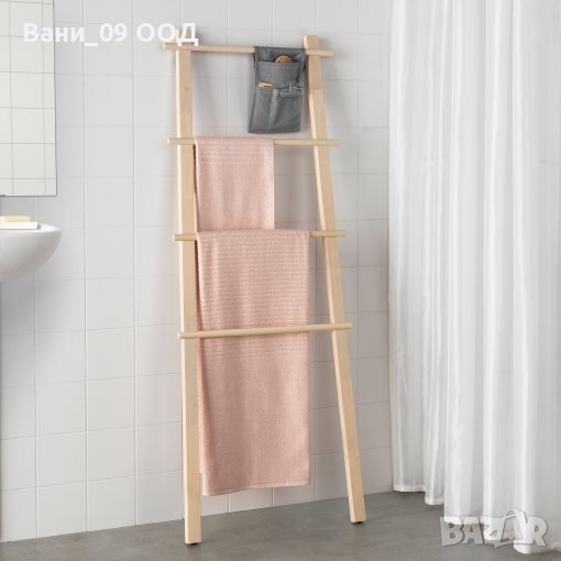 Красив и ефектен модел стойка за кърпи във формата на стълба, плюс малък сив органайзер