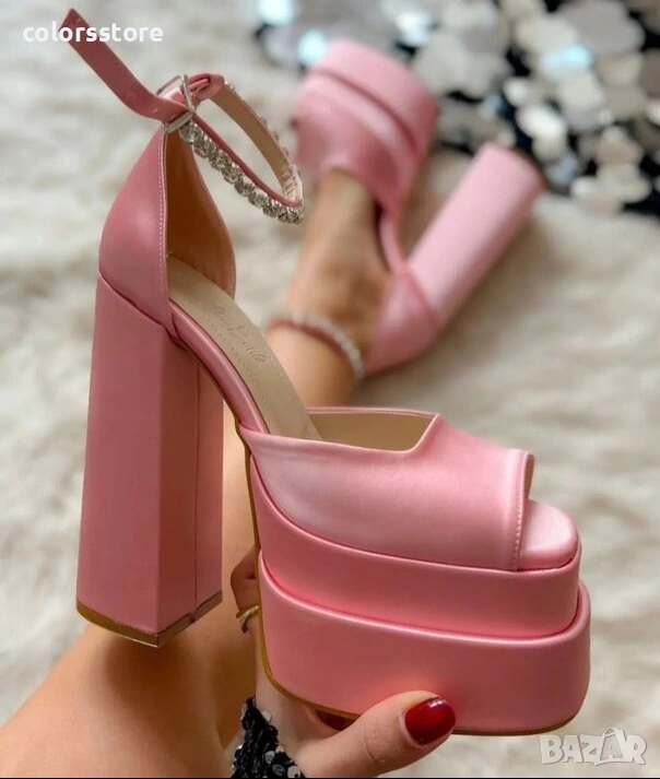 Сандали на ток - розов сатен - VS2 → Обява 41159483