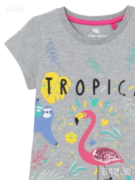 Детска рокля от Cherubino със забавен принт и пайети. Изработена от мека материя с високо съдържание на памук.