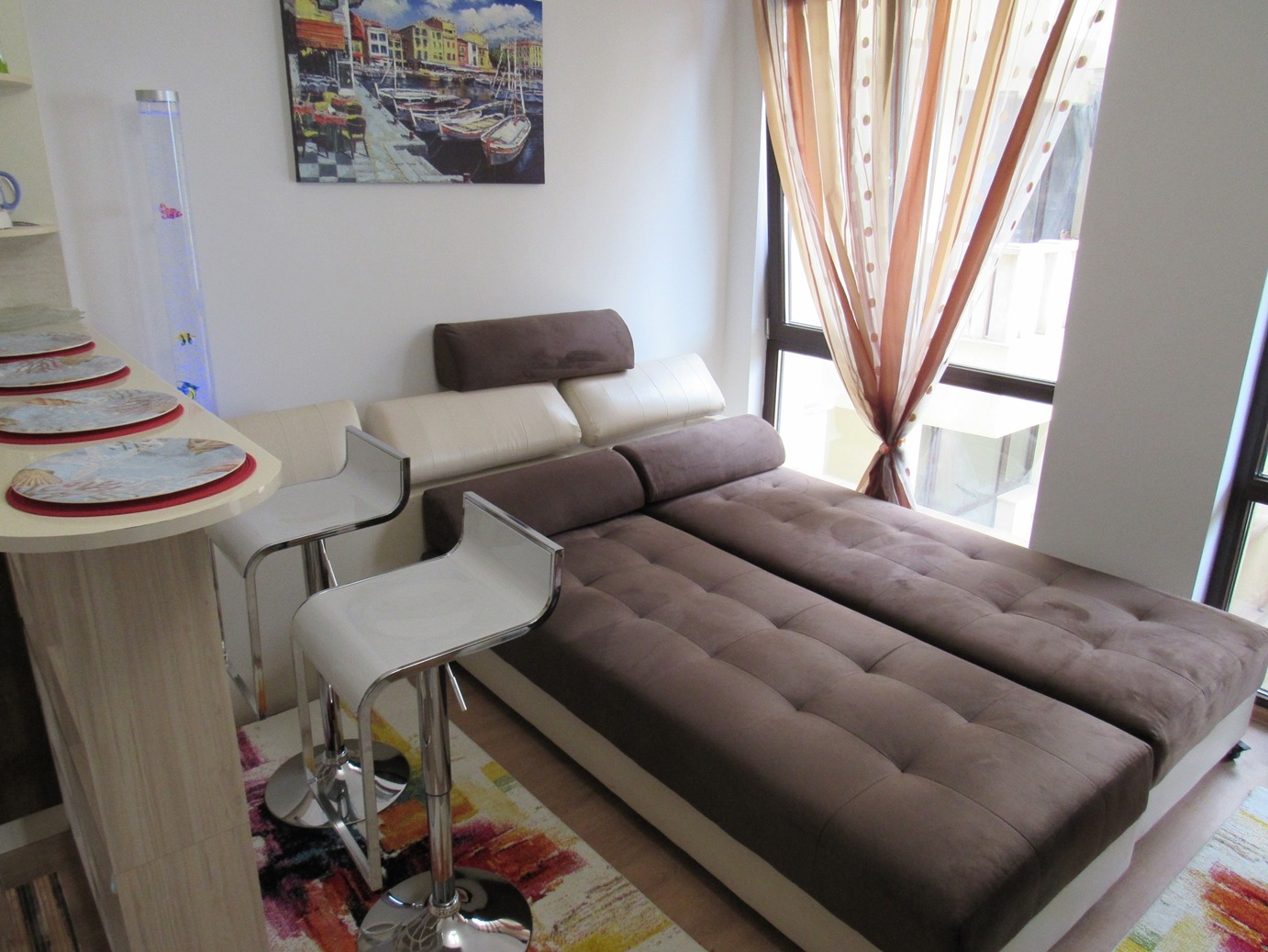 Модерно обзаведен едностаен апартамент, намиращ се в кв. Сарафово на метри от плажа. От имота се разкрива гледка към морето.
