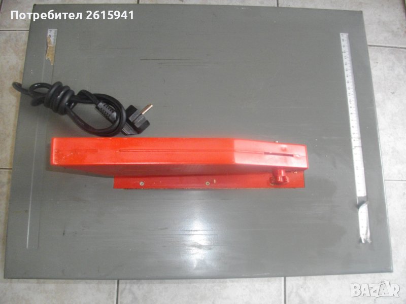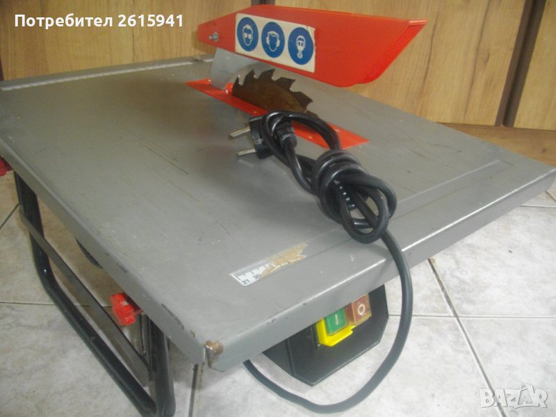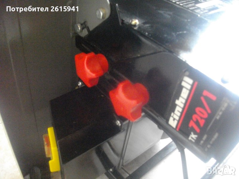 настолен циркуляр 720 вата, почти нов, немски - Ейнхел. Марка и модел - Einhell TK 720-1. Немско оригинално производство 2002 г на Einhell AG Wiesenweg Landau Isar. Машината Е СЪС ЗАБЕЛЕЖКА ПО ТЕХНИЧЕСКО СЪСТОЯНИЕ. Работи много добре, силно и мощно, но конзолата с пусковите бутони не действа. Когато се включи щепсела в ел.захранването, машината започва веднага, без натискане на бутоните. При натискане на стоп бутона, машината спира ,докато се задържи бутона, като се пусне - тръгва веднага. Проблема е в кутията на бутоните - вътре има излязла една от двете пружинки, които задържат медната пластина на контактуване на бутоните. Пружината е там, в кутията, но трябва да се намести в леглото си, като се извади и разглоби пусковата конзола и се извади релето от нея, за да се намести пластината с пружинките си. Или да се закупи нов пусков двоен ключ. Пусковите ключови от типа в магазинната мрежа са с цени 25 лв- 40 лв.