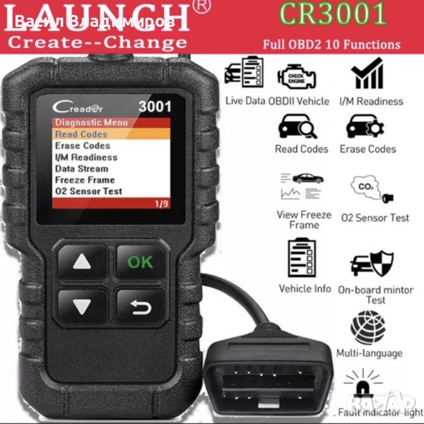 - LIVE DATA: Преглед и графичен поток на данни, O2 сензор, Evap тест на системата, тест на монитора ON-Board, DTC, извикване на кода за DTC, изключване на MIL (индикатор за неизправност).