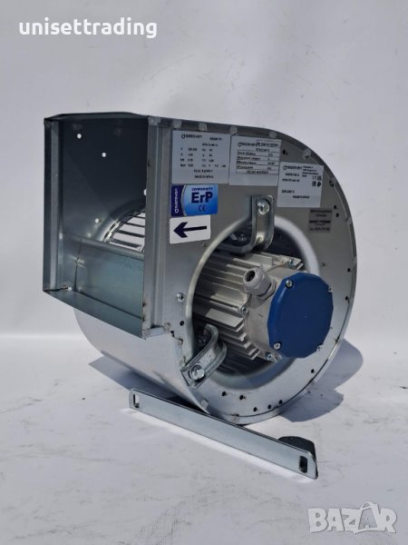 Двойносмучещ вентилатор с метален корпус и метална турбина.