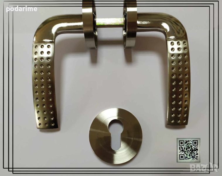 Дръжки за врата, тип - розетки, секретни. Розетката е с резба и диаметър на външния ринг - 54,2 мм. квадрат 8 мм. В комплекта са включени проходни болтове за горните розетки. По желание може да се използват и видии.