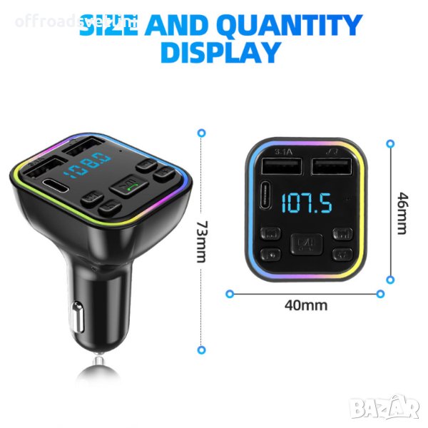 Трансмитер 12V 24V Bluetooth 5.0 FM трансмитер 3.1A Бързо зарядно