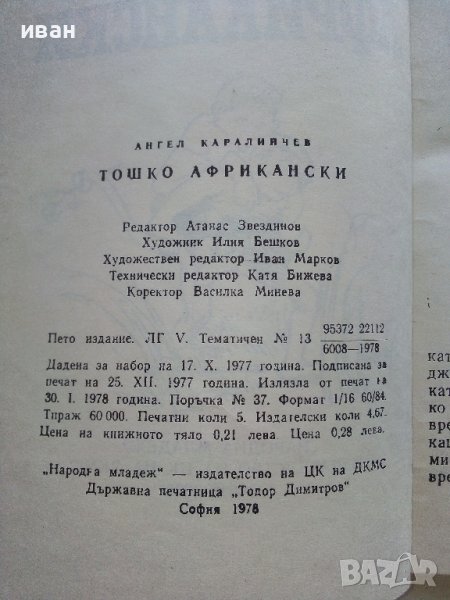 Тошко Африкански - Ангел Каралийчев - 1978г.  → Обява 41167553