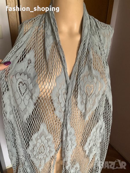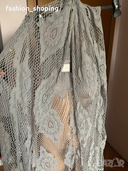 Много ефектна, мрежеста плажна туника в сиво. Секси дреха за плажа. Много привлекателно покрива полуголото тяло,облечено в бански. Туниката е мрежеста с елементи на сърца. Много закачлив и кокетен детайл са ресните, с които завършва.Няма закопчаване. Много удобна за носене, бе досадното обличане през главата.