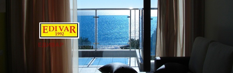 МОРСКА ПАНОРАМА!!!ПЕРФЕКТНА ЛОКАЦИЯ-50м. от плажа!!!!ЕДИВАР предлага обзаведени и оборудвани апартамент в луксозен комплекс на 50м. от морския бряг и плажа. Състои се от коридор, дневен тракт с кухня, две спални, едната със самостоятелна баня с тоалетна, баня с тоалет, две тераси с изглед към нос Чиракман и морския залив.Предлагат се тристайни апартаменти в сградата както следва- ет6,90