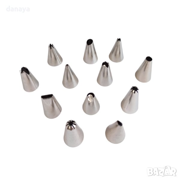 Комплект от 12 броя сладкарски накрайници за пош. Всички накрайници са различни за разнообразна декорация на торти и сладкиши.