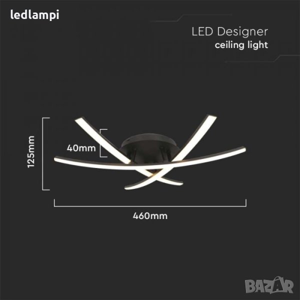 LED Плафониера 20W Черна Топло Бяла Светлина
