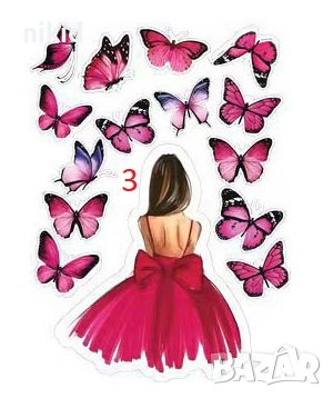 Момиче дама лейди жена с пеперуди топери топер картонени украса декор за торта моминско парти рожден → Обява 41186372