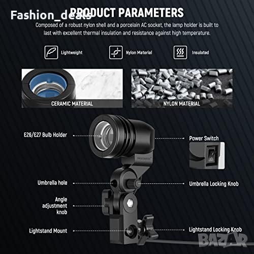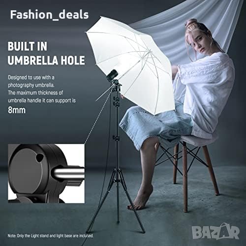Вграден отвор за чадър за закрепване на фотографски чадър за разсеяно осветление.