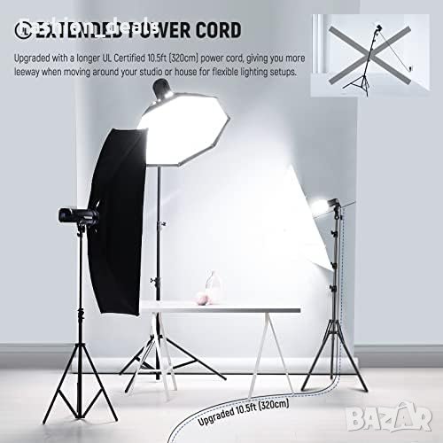 По-дълъг захранващ кабел с дължина 10,5 фута (320 см) за по-голяма гъвкавост при позициониране с английски контакт