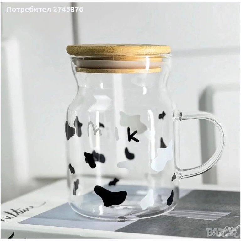 с тази прозрачна стъклена чаша с капак,