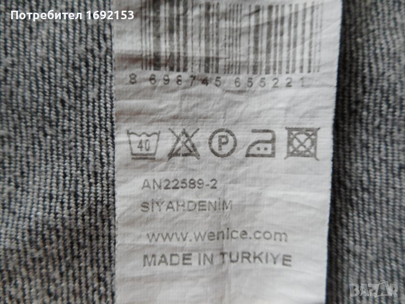 Полата е с 2 предни джоба. Отпред има 9 см цип за улеснение при обличане. На талията от вътрешната страна е с ластик за допълнително регулиране на ширината и е с плътна памучна подплата. Дължина - 36 см. Шир. на талията - 35 см. Стои много хубаво.