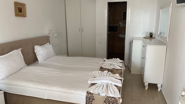 Сутеренен етаж:две самостоятелни стаи със санитарен възел; партер (ЗП: 63 кв.м.):две студиа със собствена баня с тоалетна;първи етаж (78 кв.м.); апартамент с една спалня, дневна с трапезария, кухненски бокс, баня с тоалетна и тераса. втори етаж:просторно студио с баня с тоалетна и тераса;трети етаж (ЗП:84 кв.м.) с три двойни стаи с WC и тераси, две гардеробни помещения.