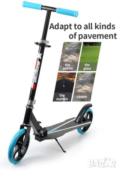 Тротинетка, скутер, Голяма тротинетка с големи гуми, колела 200мм за деца, възрастни, сгъваема 200mm