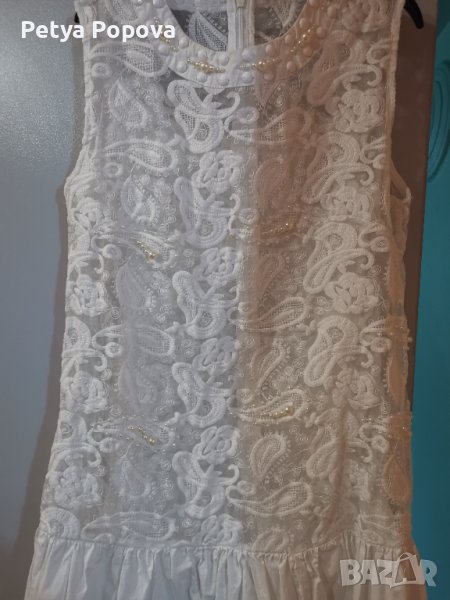 Бяла рокля нашита с перли и дантела → Обява 41189193