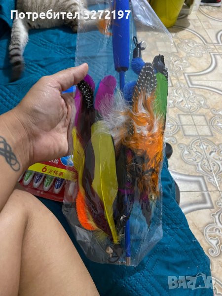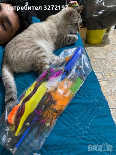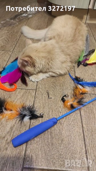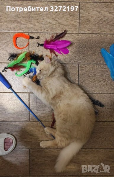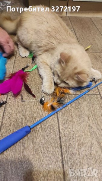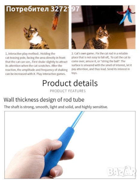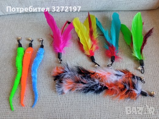 Комплект игра за котки-телескопична въдица + 10 различни сменяеми пера