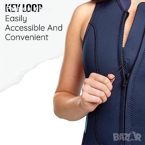 Изработен от 3 мм неопренов материал за изолация и 2 мм неопрен за гъвкавост във водата.