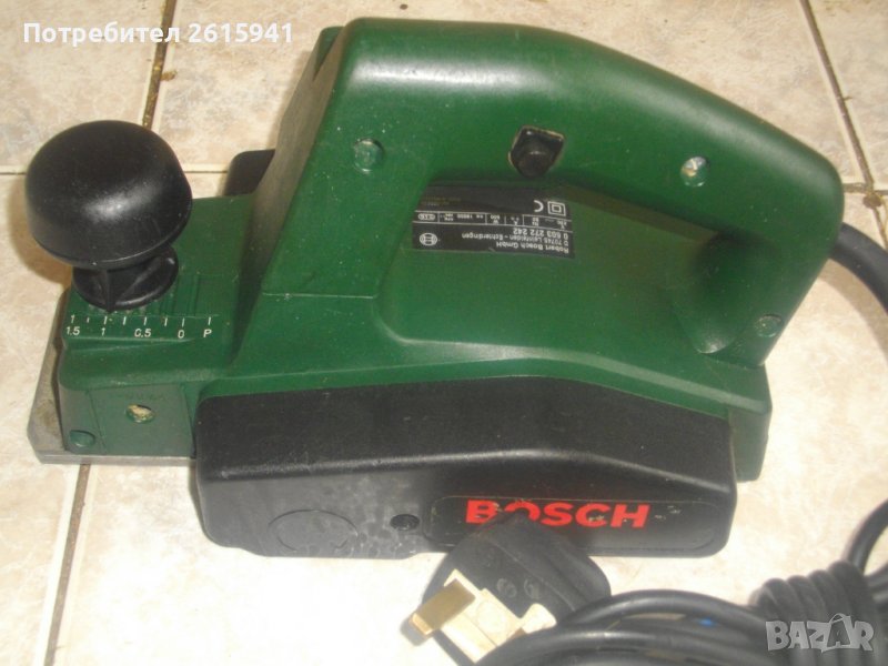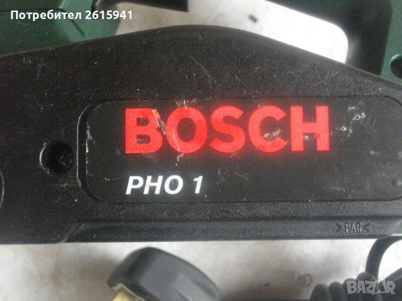 ОПИСАНИЕ на ел.ренде - машина Хобел - Бош. Цена 179 лв. НЕ Е НАЛИЧНО. Марка и модел BOSCH PHO 1. Произовдство - Made in Malaysia. Запазен външен вид и добро техническо/работно състояние. Модела е с 1 бр. нож на барабана. Поставен оригинален нож 82 мм. Отличен, без забележки, без нащърбвания. Ремък - оригинален на Бош. Мощност на мотора - 500 вата ,скорост 19 000 об/мин. Защита - 2,0 Ампера. Регулация стружуване 0-1,5 мм. Автостоп на спусъка. Предна дръжка /реглаж на стружуването/. Захранващ кабел - оригинален с английски тип щепсел с бушон защита. За пробата в офис Еконт - носете си адаптер преобразувател еврощепсел.