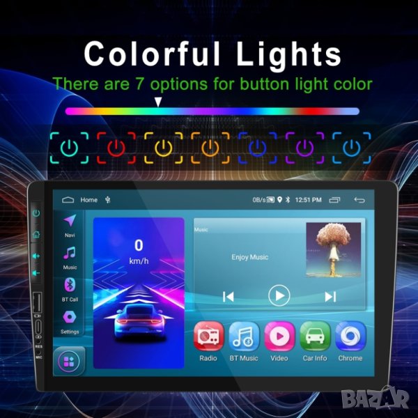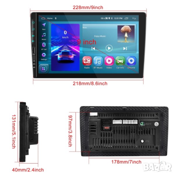 9" 2-DIN мултимедия с Android 12, RDS, 64GB ROM , 2GB RAM
