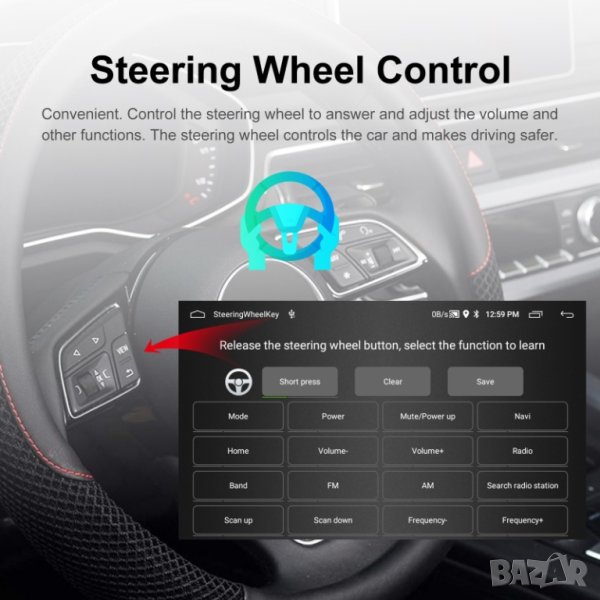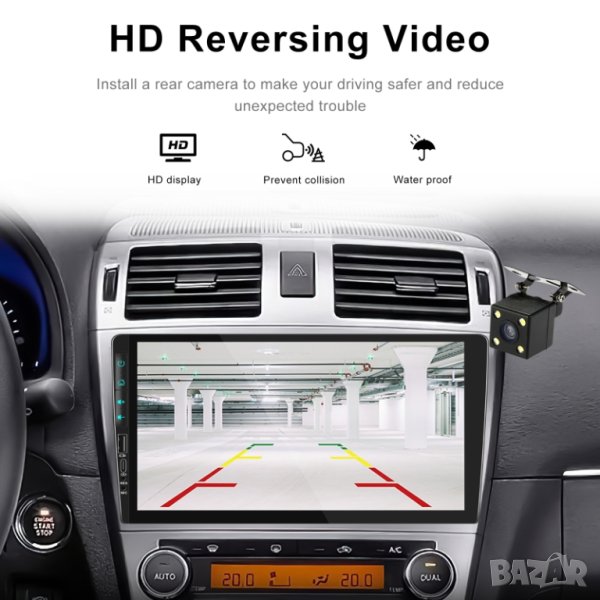 9. Автоматичен обратен изглед за паркиране : Когато колата е на задна предавка, дисплеят автоматично ще премине към изглед на камера за обратно виждане. Възможен е и монтаж на предна камера - след изключване от задна предавка, екранът автоматично ще превключи към изглед предна камера за 10 секунди. Камери се поръчват отделно.