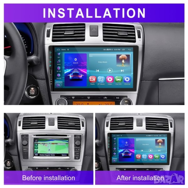 По принцип този тип плеъри са предназначени за монтаж на мястото на оригинална 2-DIN аудиосистема или посредством специфичен за модела на автомобила пластмасов декоративен детайл, който да замени оригиналния. Освен при нас, рамки за конкретни марки и модели се предлагат и в Аliеxprеss, и от някои други търговци в България. С малко творчество и индивидуален подход може да се монтира и без специфичен за модела на автомобила пластмасов декоративен детайл, монтажните размери са дадени в снимките, допълващи публикацията. Има и коли, на които пасва, все едно е от там. Моля, вижте размерите на мултимедията и декоративната лайсна и преценете дали ще ви е нужна адаптерна рамка.
