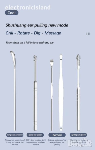 - Иновативният комплект за почистване на ушна кал с пружинен иновативен инструмент за почистване на уши, безопасен и безболезнен.