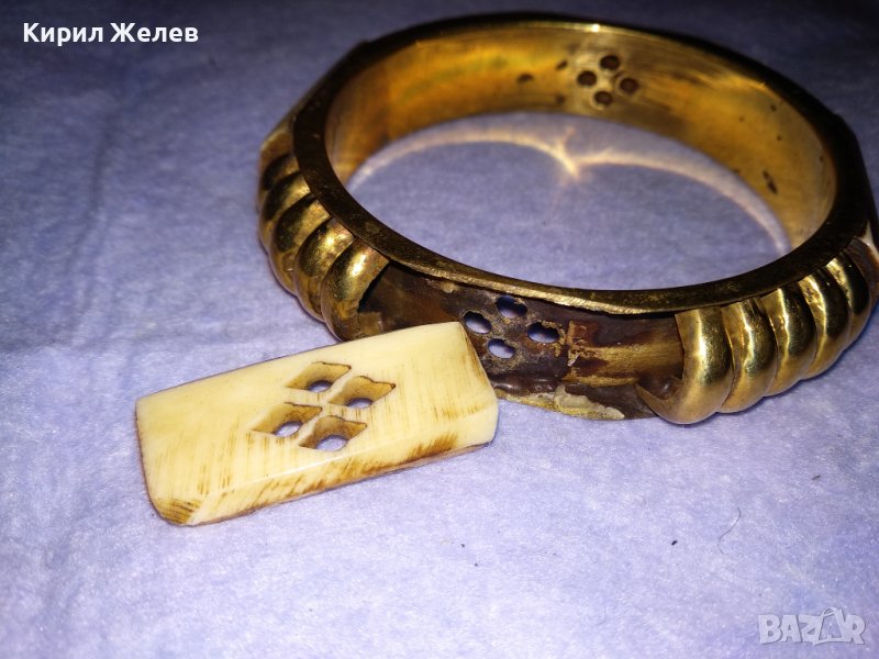 СТАРА БРОНЗОВА ТИБЕТСКА ТРАДИЦИОННА ГРИВНА с КАМИЛСКА КОСТ с НУЖДА от ЛЕКА РЕСТАВРАЦИЯ! 38316
