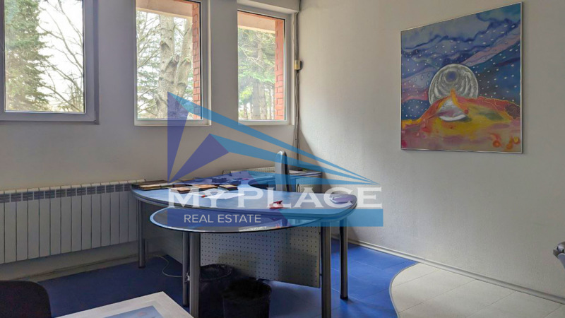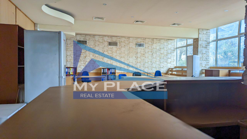 На първият етаж са обособени различни по големина офиси, заведение, складове с рампа за товарни автомобили, санитарен възел. Вторият етаж е разделен на три големи помещения всяко със 150 кв.м площ, санитарен възел, офиси и коридор, като подлежи на преустройство спрямо нуждите на наемателя.