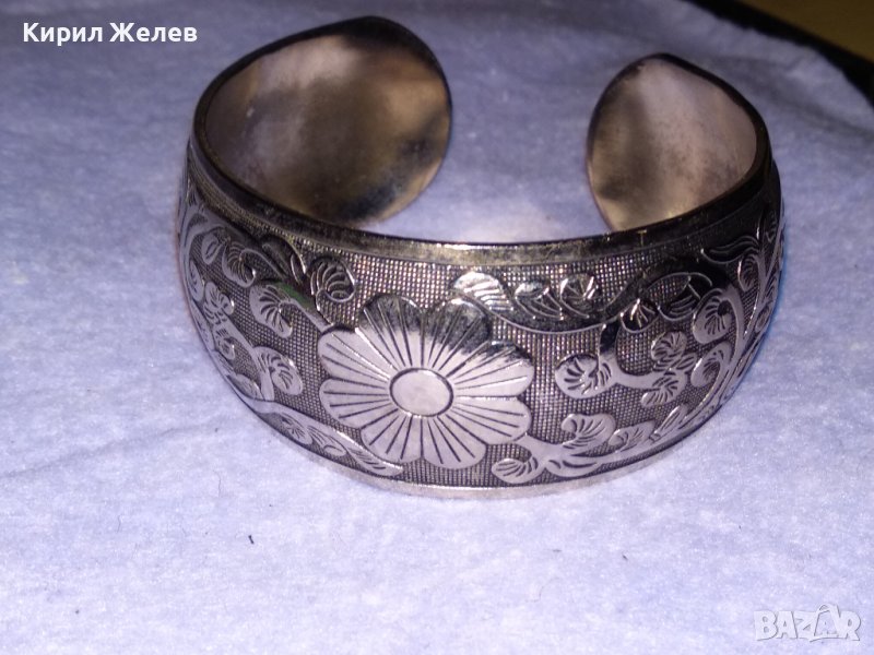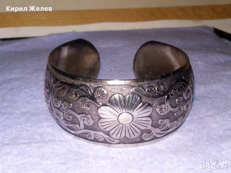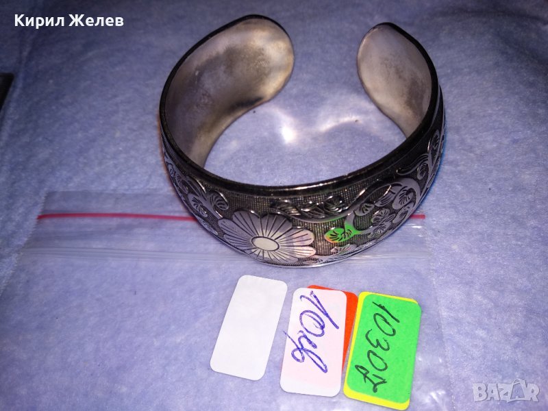 ПРЕКРАСНА СРЕБРИСТА ФЛОРАЛНО ОРНАМЕНТИРАНА РЕГУЛИРУЕМА БРОНЗОВА РЕТРО ГРИВНА 10307