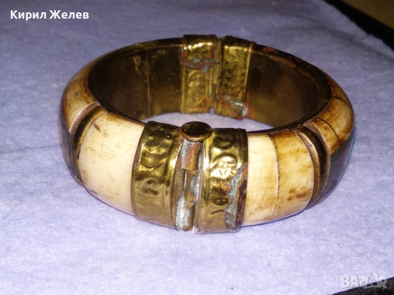 СТАРА МАЙСТОРСКА ТИБЕТСКА БРОНЗОВА ГРИВНА с КАМИЛСКА КОСТ и ИНКРУСТИРАНИ МЕСИНГОВИ СЛОНЧЕТА 73631