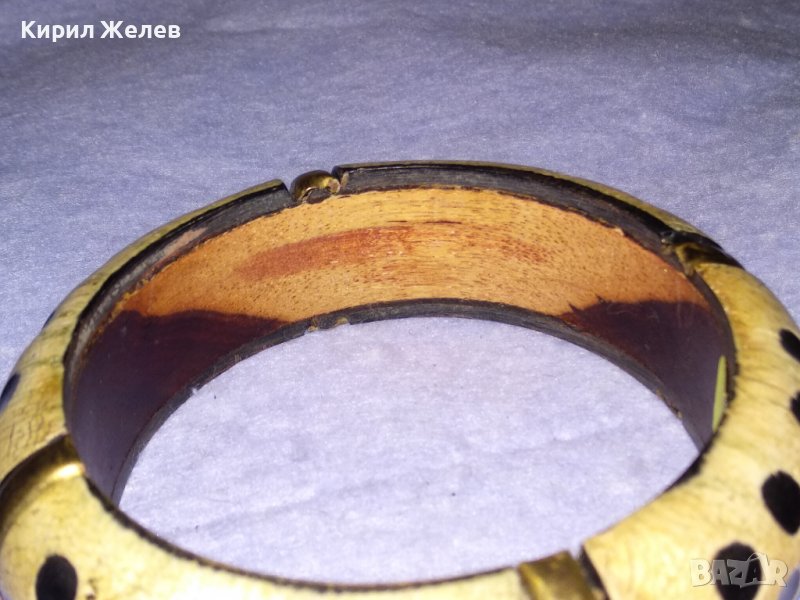 СТАРА ДЪРВЕНА РЯДКА РЪЧНА ИЗРАБОТКА РЕТРО ГРИВНА с БРОНЗОВИ ЕЛЕМЕНТИ 70011