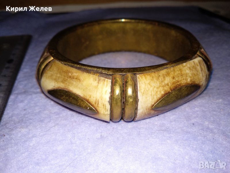 СТАРА БРОНЗОВА ТИБЕТСКА ТРАДИЦИОННА ЕТНО ГРИВНА с КАМИЛСКА КОСТ РЪЧНА ИЗРАБОТКА 16702