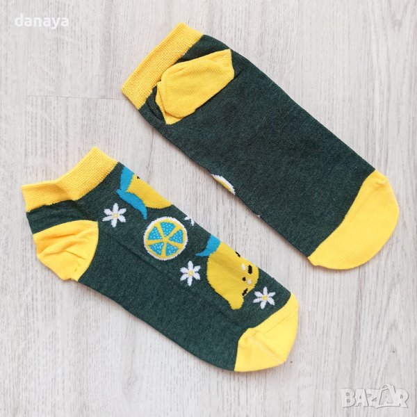 Дамски памучни чорапи за маратонка със забавни картинки на различни плодове. Чорапите са размер 36-41 номер, подходящи са за дами или тийнейджъри. Много мекички на допир, удобни за носене, със свежи цветове.
