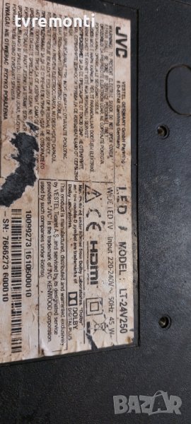 POWER BOARD ,17IPS61-4,for JVC LT-24V250 DISPLAY 24 inc VES236WNVB-2D-N01 Борда е гарантирано работещ Демонтиран от телевизор JVC модел LT-24V250 със счупен дисплей VES236WNVB-2D-N01 тествана от нашия техник