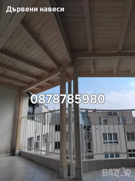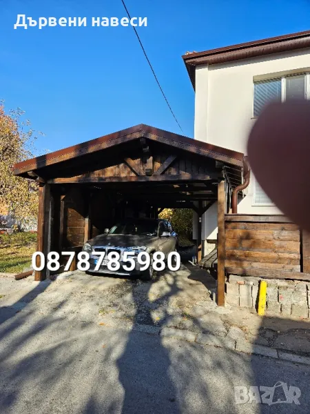 дървени навеси, беседки, барбекюта и гаражи, като целият дървен материал се шлайфа и импенгрира. Гаранция, договор направа на всякакви навеси от дърво, навеси на тераси, гаражни навеси за автомобили, навеси за летни кухни, барбекю и зимни градини от дърво