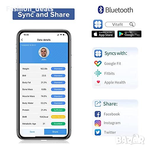 Може да се синхронизира с Apple Health, GoogleFit , Google Health