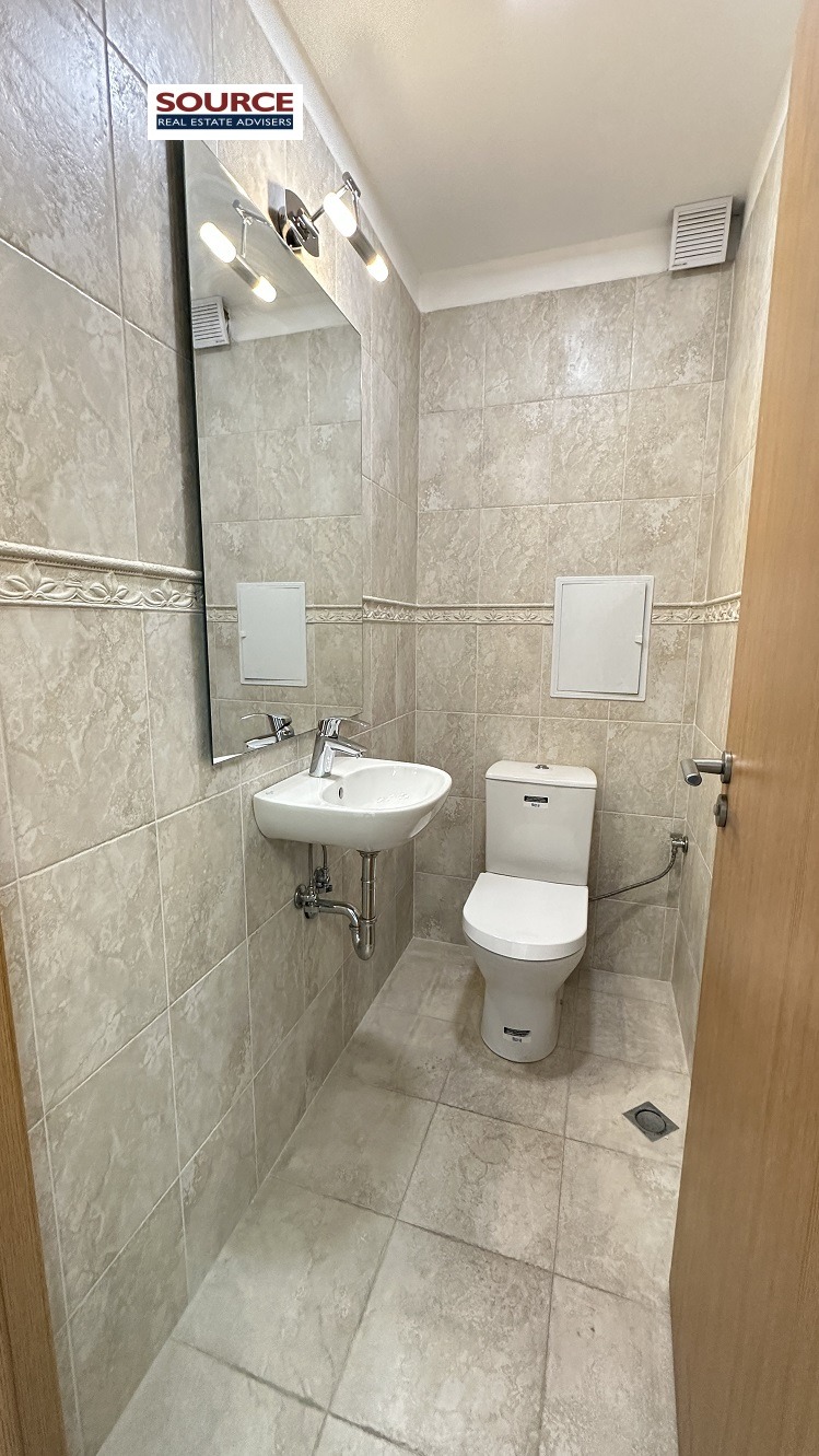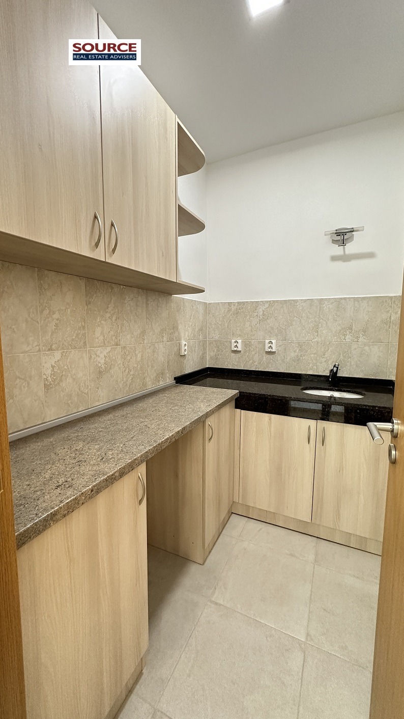 2. Разпределение: 1 Open space помещение, 1 отделно работно помещение, оборудвана кухня, wc. Офисът може да бъде допълнително преграден според изискванията на Наемателя.