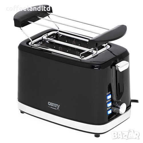 Ефективен тостер с мощност 900 W, в който могат да се приготвят по две филийки наведнъж. Копчето за регулиране на силата позволява да се приготвят тостове по начина, по който харесвате най-много. Благодарение на това те са точно толкова хрупкави, колкото би трябвало да бъдат. Тавата за трохи помага за поддържането на устройството, както и мястото, където човек приготвя храната, чисти. Когато тостерът е включен корпуса му, остава студен - това е един от факторите, които повишават безопасността при работа с устройството. Човек може да спре процеса на препичане чрез бутона Cancel. Тостерът има и бонус функция, увеличаваща полезността му - скара за загряване на хлебчета.