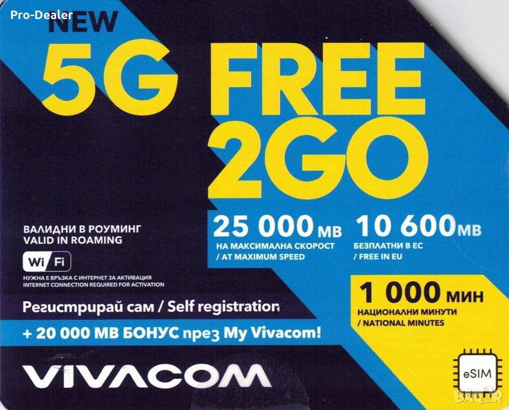 Регистрирай сам предплатена сим карта Виваком FREE2GO e-Sim Self-Register SIM Card Vivacom