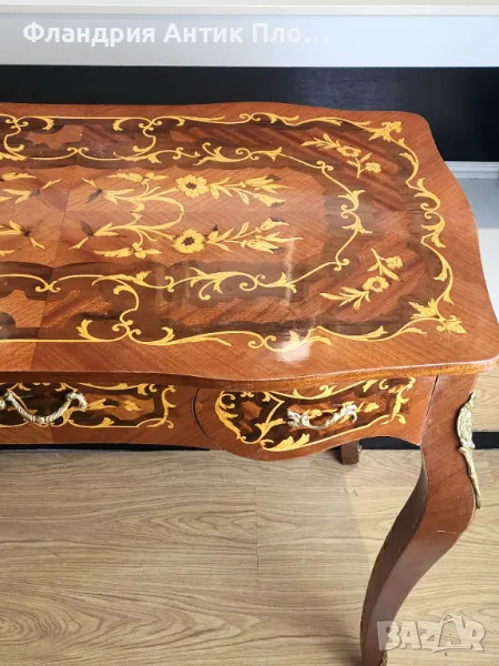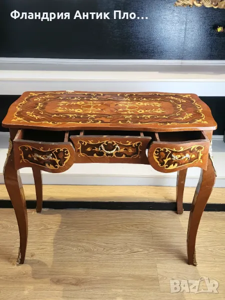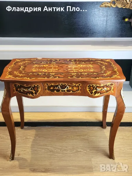 Представяме ви невероятното писалище с интарзия и месингов обков - комбинация от изкуство и функционалност, която ви отвежда в едно време и пространство на изисканост и изтънченост.