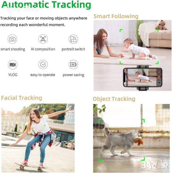 Размер: Диаметър 92 * Височина 180 мм Поддържан размер на телефона: 56-100 мм Непрекъснато време на работа: около 50 часа Тип: модели с батерии (батерията не е включена) Характеристика: 1. Поддръжка за проследяване на мобилен телефон: 360-градусова поддръжка за автоматично проследяване на лица Поддръжка на мобилен телефон и камера за проследяване на обекти, за да ви помогне да разрешите проблема, оставете мобилния телефон да ви следва, без повече да искате информация.помогнете да правите селфита. 2. Проследяване на лице и интелигентно заснемане: Проследяването на лице поддържа въвеждането на технология за синтез на изображение с изкуствен интелект и оценка на размера на човешкото тяло при интелигентно снимане, завъртане на 360 градуса и автоматична идентификация на човек/PET. 3. Проследяване на обект, интелигентно проследяване: Селфи стикът на мобилния телефон може да проследява обекта в реално време и да следва движението на обекта. 4. Лесна работа: първо изтеглете софтуера с мобилния си телефон без регистрация или влизане, след това включете бутона за захранване, натиснете и задръжте бутона за захранване за 5 секунди, червената светлина светва, включете безжичния мобилен телефон, след което се свържете автоматично. 5. Обърнете внимание на детайлите: държачът за смарт телефон с 360 камера за проследяване на обекти трябва да се използва със смарт телефон. Препоръчително е да използвате една сцена за най-добър ефект на наблюдение. Не движете лицето/предмета си твърде бързо Пакетът включва: 1 * Стойка за мобилен телефон Smart Auto Shot