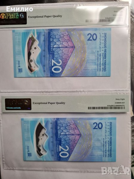 CHINA 🇨🇳 СЕТ ОТ ДВЕ БАНКНОТИ ПО 20 ЮАНА 2022 год. ОЛИМПИЙСКИ ИГРИ ПЕКИН 2022. PMG 68
