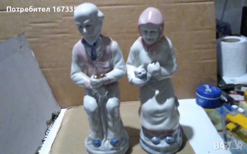 Продавам нови статуетки видно от предпоследната снимка с височина 25 см два броя възрастни мъж и жена ( баба и дядо) много красиви и майсторска изработка .Мъжа е в другата ми обява на цена 50.00 лв