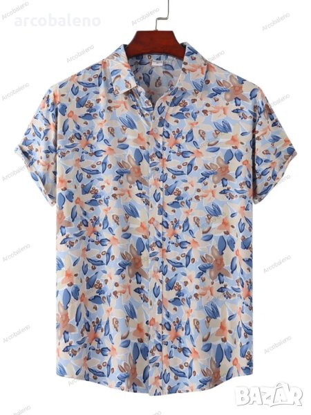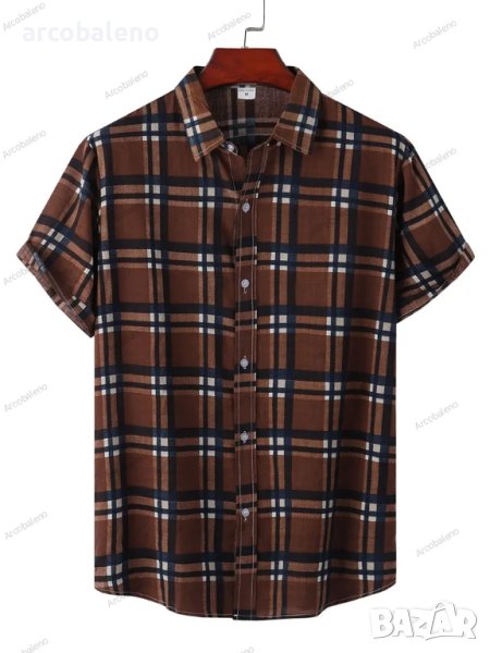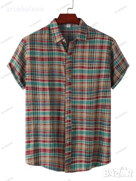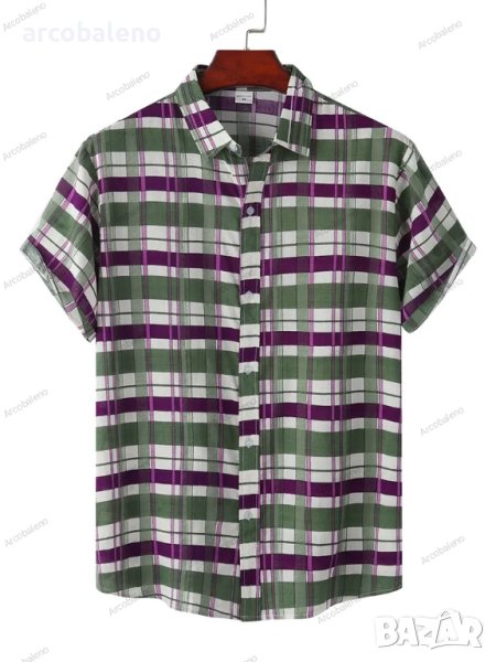Мъжка памучна ежедневна риза с къс ръкав в плътен цвят, 10цвята